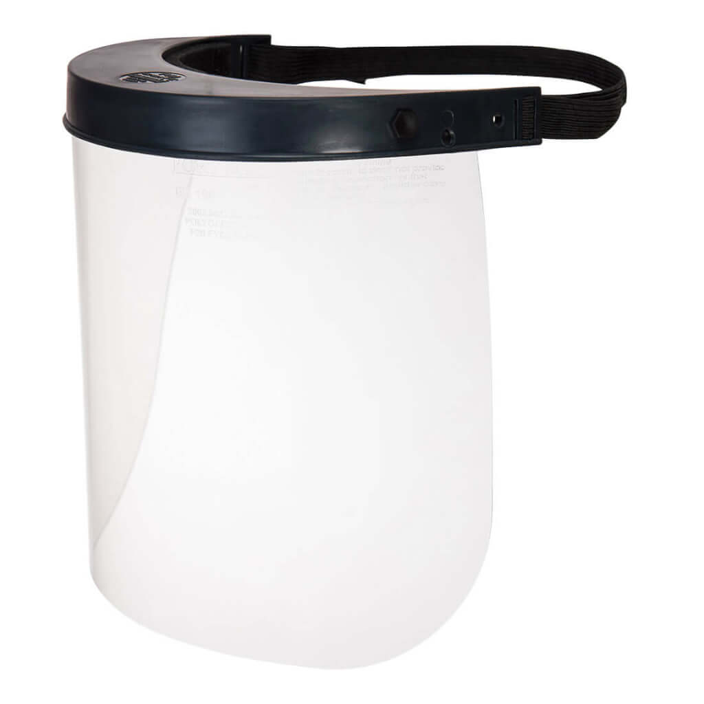 Lightweight low profile Browguard with clear visor. Fully certified to EN 166 optical class 1 for general industrial use. Fully adjustable with an elastic band for easy use and a soft sweatband included. Suitable for protection against light mechanical impacts, debris, fluid and liquid splashes.